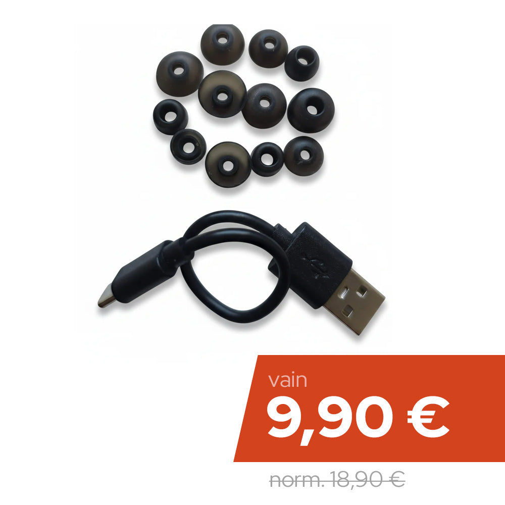 Rakenne toimii akustisena tiivisteenä, joka vähentää ympäristön melua ja parantaa kuuntelukokemusta. Sopivat useimpiin kuulokkeisiin, joiden putken halkaisija on 4.5-6 mm.
