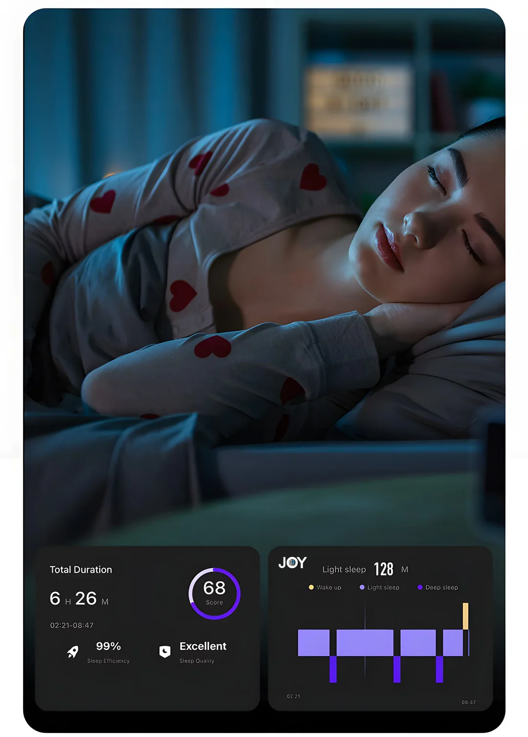 Mientras duerme, el anillo puede controlar automáticamente la calidad de su sueño y generar un informe sobre el sueño para ayudarle a desarrollar buenos hábitos de sueño.