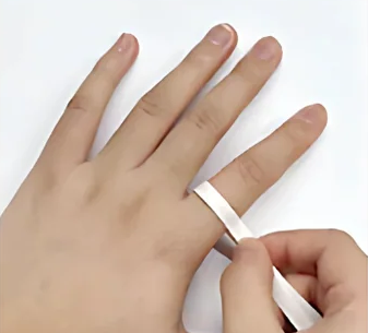 Coge un trozo largo y no elástico de cuerda o tira de papel y enróllalo alrededor del dedo que quieras medir.