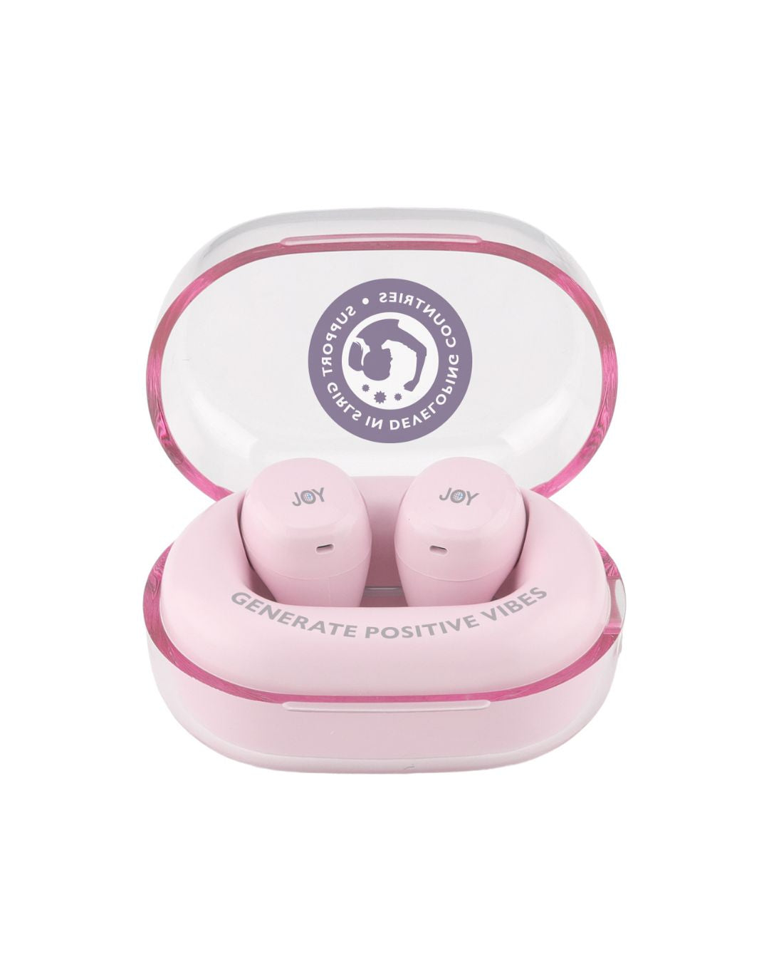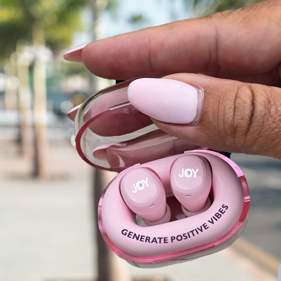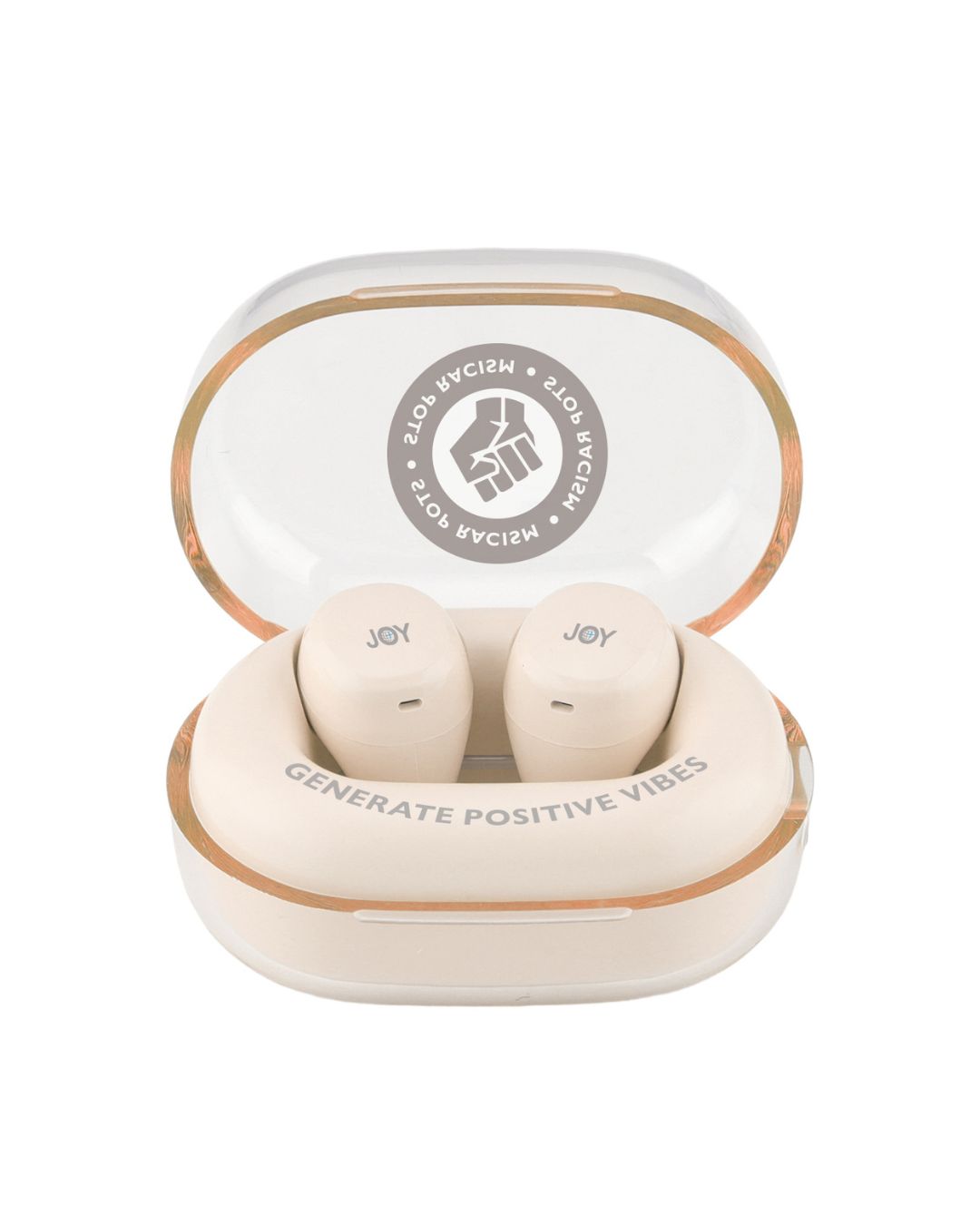 Para un ajuste y un sonido óptimos, utilice los auriculares adecuados. Los auriculares incluyen tres tamaños (S, M, L). Experimente para encontrar el ajuste más cómodo. Alinee los auriculares utilizando los indicadores izquierdo (L) y derecho (R) y el logotipo JOY. La colocación correcta se consigue cuando las marcas R/L están horizontales y por encima del logotipo.